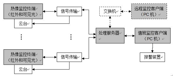 本地紅外熱像監(jiān)控與分析診斷系統(tǒng)由三大部分組成:紅外熱像終端,信號(hào)傳輸,處理服務(wù)器;。