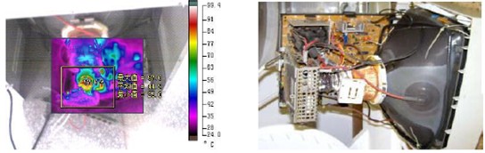CRT是使用陰極射線管的顯示設備(包括電視機、顯示器等),目前在市場上占有較大份額。利用熱像儀對阻尼電阻、電子槍、偏轉(zhuǎn)線圈、高壓包等部位溫度場檢測,可以提高CRT產(chǎn)品質(zhì)量,具有傳統(tǒng)檢測方式無法比擬的優(yōu)勢。