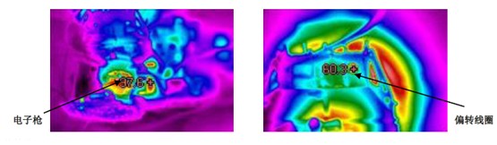 高壓包為電子槍提供高電壓,正常運行時溫度在40℃左右,極限溫度為60℃。利用熱像儀可以直接測試高壓包溫 度值。