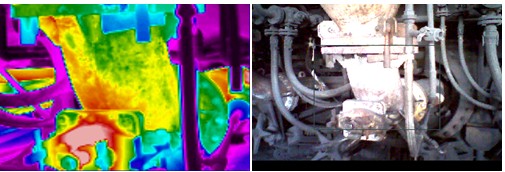 1 現(xiàn)場有很多溫度較高的設(shè)備,非常容易將附近高溫輻射源反射進紅外熱像儀,造成嚴重干擾;在拍攝時要注意避開熱源干擾,改變拍攝角度。