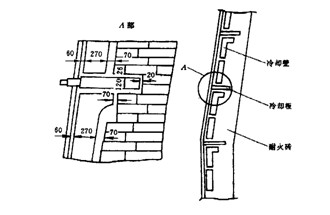 對于全部使用冷卻板設備冷卻的高爐,冷卻板設置在風口部位以上一直到爐身中上部。爐身中上部到爐喉鋼磚和風口以下采用噴水冷卻或光面冷卻壁冷卻。全部使用冷卻壁設備冷卻的高爐,一般在風口以上一直到爐喉鋼磚采用鑲磚冷卻壁,風口以下采用光面冷卻壁。在實際使用中,大多數高爐根據冶煉的需要,在不同部位采用各種不同的冷卻設備。這種冷卻結構形式對整個爐體冷卻來說,稱為板壁結合冷卻結構。近十多年來,隨著煉鐵技術的發展和耐火材料質量的提高,高爐壽命的薄弱環節由爐底部位的損壞轉移到爐身下部的損壞。因此,為了緩解爐身下部耐火材料的損壞和爐殼的保護,在國內外一些高爐的爐身部位采用了冷卻板和冷卻壁交錯布置的結構形式,起到了加強耐火材料的冷卻和支托作用,又使爐殼得到了全面的保護。