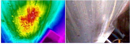 利用紅外熱像儀對高爐表面進行分區塊的檢測,并通過紅外分析軟件,對得到的熱圖像進行溫度分布的分析。通過爐皮表面的不同變化,可以直接判斷有無內襯缺陷。如果某部位拍攝的熱圖對比溫度明顯上升,可以認定爐內襯已有損壞侵蝕。