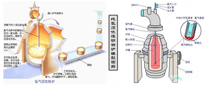 轉爐爐體用鋼板制成,呈圓筒形,內襯耐火材料,吹煉時靠化學反應熱加熱,不需外加熱源,是最重要的煉鋼設備,也可用于銅、鎳冶煉。轉爐按爐襯的耐火材料性質分為堿性(用鎂砂或白云石為內襯)和酸性(用硅質材料為內襯)轉爐;按氣體吹入爐內的部位分為底吹、頂吹和側吹轉爐;按吹煉采用的氣體,分為空氣轉爐和氧氣轉爐。轉爐煉鋼主要是以液態(tài)生鐵為原料的煉鋼方法。其主要特點是:靠轉爐內液態(tài)生鐵的物理熱和生鐵內各組分(如碳、錳、硅、磷等)與送入爐內的氧進行化學反應所產生的熱量,使金屬達到出鋼要求的成分和溫度。爐料主要為鐵水和造渣料(如石灰、石英、螢石等),為調整溫度,可加入廢鋼及少量的冷生鐵塊和礦石等。在轉爐煉鋼過程中,鐵水中的碳在高溫下和吹入的氧生成一氧化碳和少量二氧化碳的混合氣體,即轉爐煤氣。轉爐煤氣的發(fā)生量在一個冶煉過程中并不均衡,且成分也有變化,通常將轉爐多次冶煉過程回收的煤氣經降溫、除塵,輸入儲氣柜,混勻后再輸送給用戶。