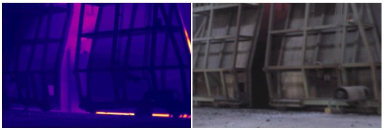利用紅外熱像儀對轉爐表面進行分區(qū)塊的檢測,并通過紅外分析軟件,對得到的熱圖像進行溫度分布的分析。通過爐皮表面的不同變化,可以直接判斷有無內襯缺陷。如果某部位拍攝的熱圖對比溫度明顯上升,可以認定爐襯已有損壞侵蝕。