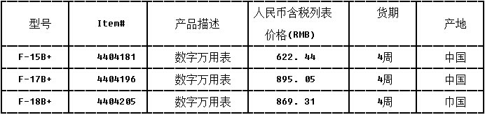 除此之外,帶有頻率和溫度測試功能的F-17B+還增加了安全電壓報警功能以及Min/Max最大最小值記錄功能,有助于幫助用戶更安全和高效使用儀表。獨有LED發光二級管測試功能的Fluke-18B+,增加了頻率測試功能,更好地滿足電子制造行業的測試需求。