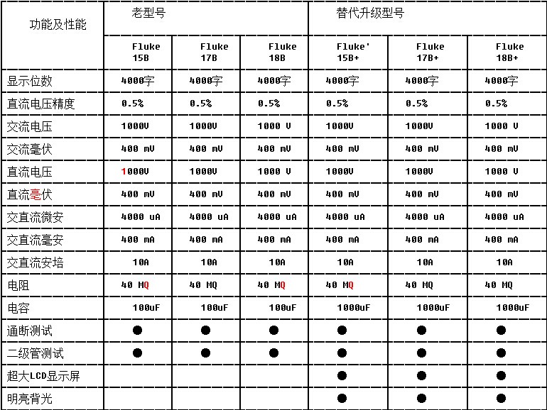 精準,耐用,安全的品質基礎上,升級了多達8項的性能或功能,這些提升的功能或性能包括:所有型號擁有1.5倍于老型號的更大的LCD顯示屏和明亮的白色背光,使用戶能夠在暗淡的測試環境下依舊易于清晰讀取數據。增強的電容量程以及更加快速的電阻,電容測試響應速度,擴展了測試范圍,同時大大縮短了測試等待時間,提高了測試效率。特別的支架和表體集成設計,獨立電池艙蓋設計,以及兼容的磁性掛帶更好地滿足了用戶對儀表使用的靈活性需求。