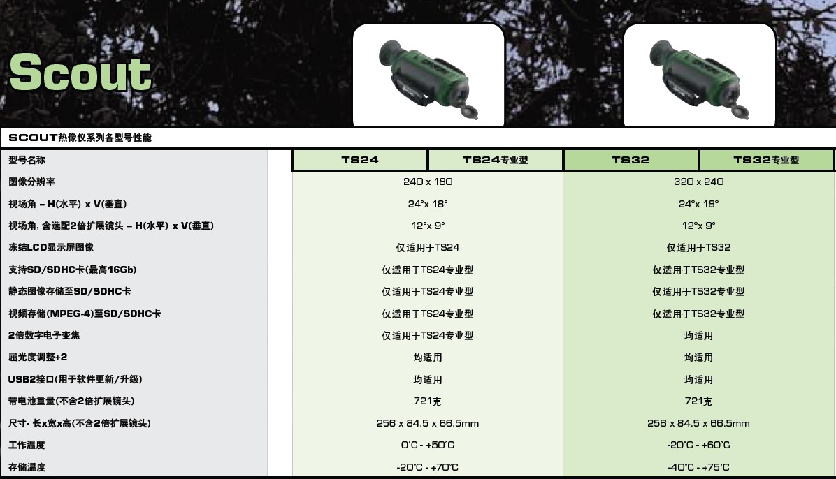 Scout采用應用于軍事和執法領域的先進科技,是首款個人用熱像儀,它的價格極易承受,性能卓越且非常實用,為常在野外活動的人提供高分辨率的夜視熱成像。Scout依靠熱量而非光源生成圖像,此技術乃肉眼、甚至光放大(I2)夜視設備所無法比擬。這意味著在無任何可見光的情況下你仍能“明察秋毫”。 動物和物體均會產生熱量,人、并與背景形成反差,即便在最 不利的條件下,Scout夜視熱像儀依舊能清晰看清他們的存在。